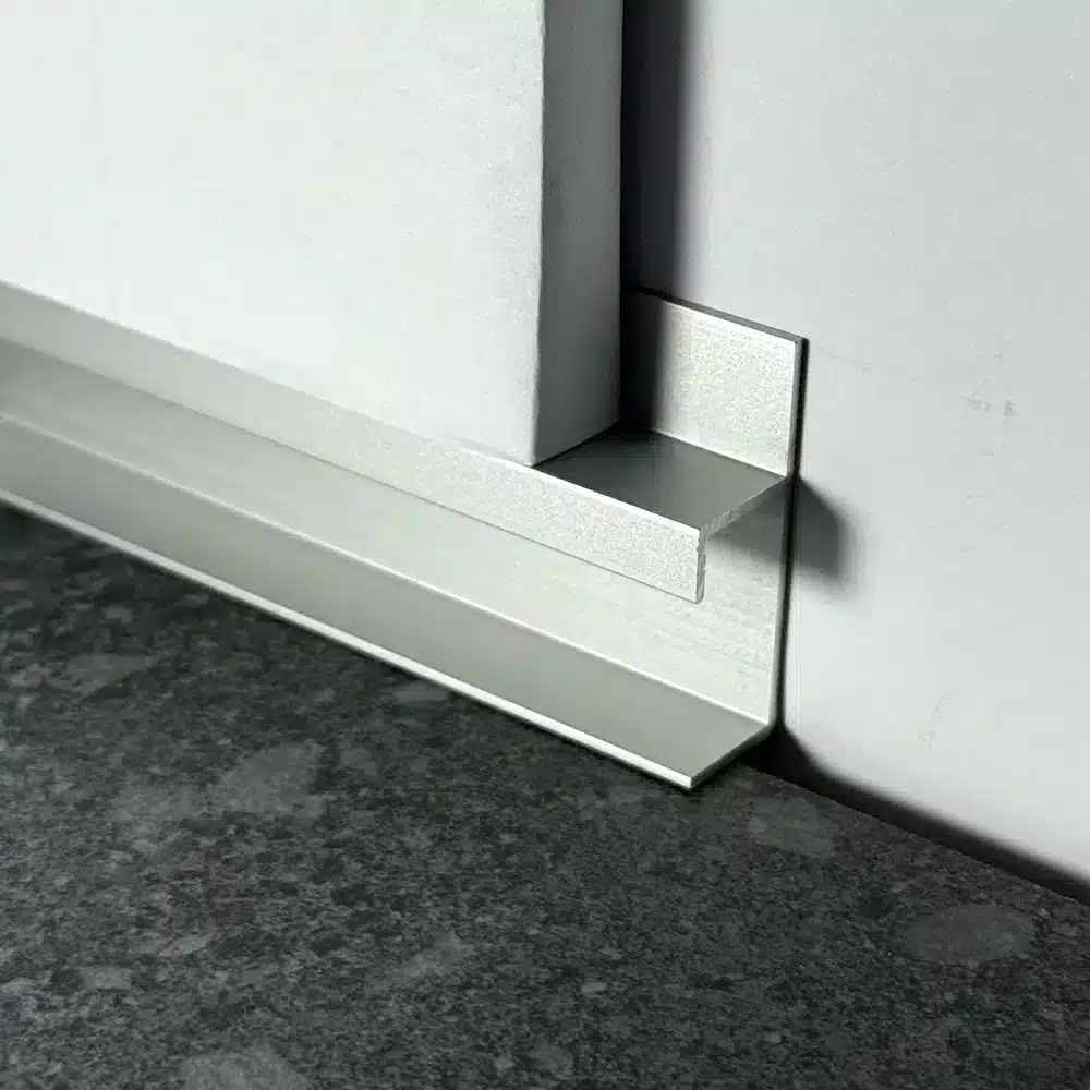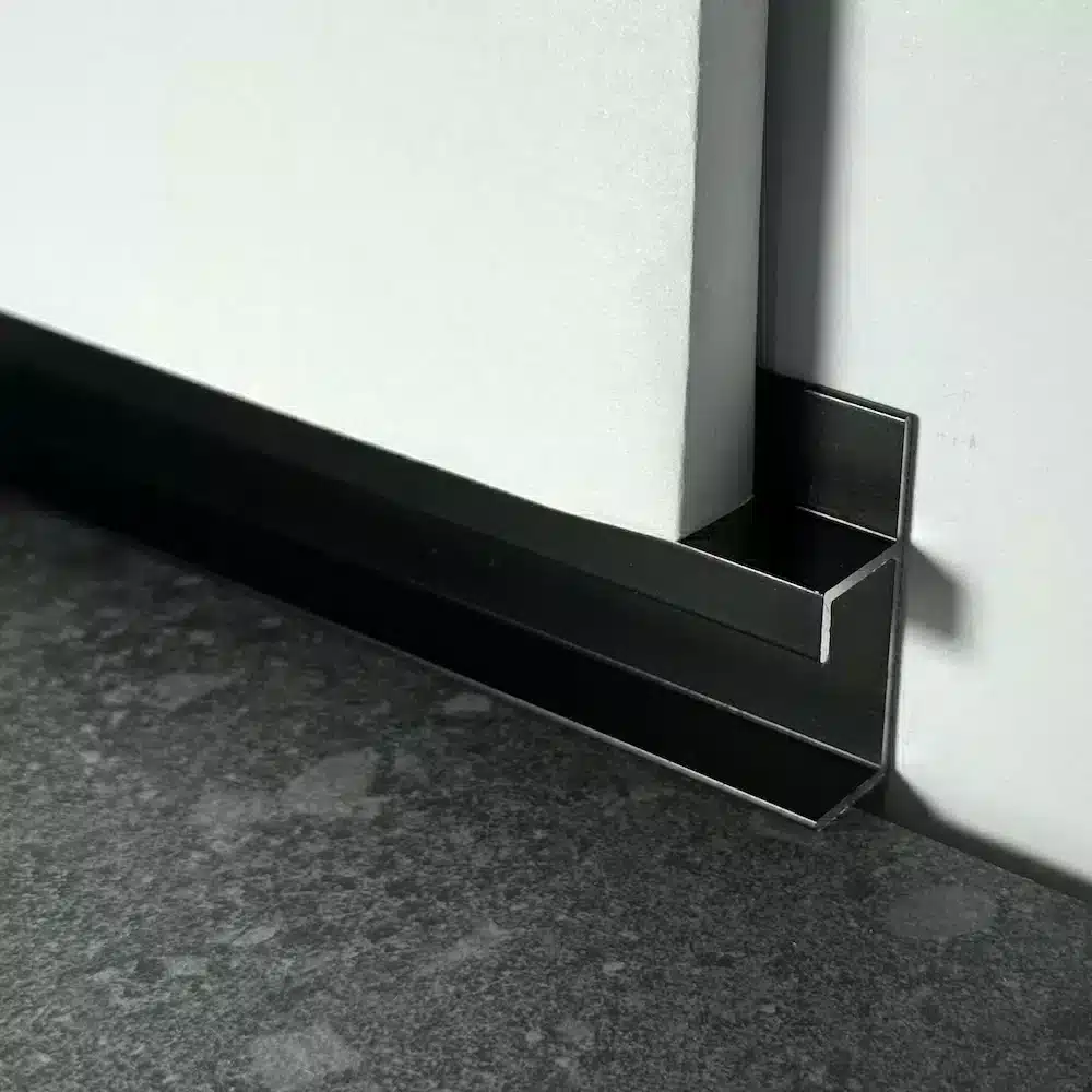 Utilizare ca plintă retrasă încastrată la baza pereților din gips-carton, creând efectul elegant de „podea plutitoare”.