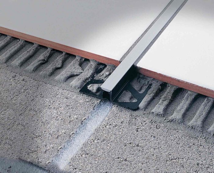 side and a more rigid fixing flange. Designed to divide large tiled areas