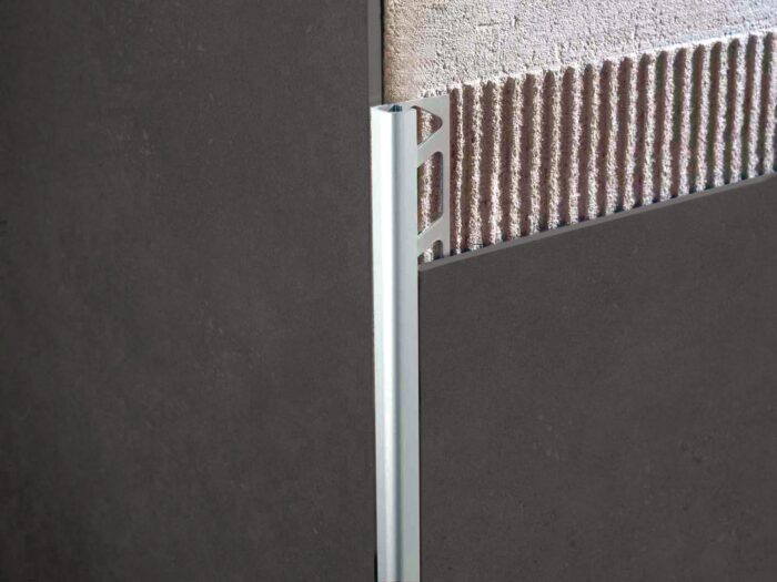 Roundjolly RJ-A, realizat din aluminiu anodizat, oferă o finisare elegantă și durabilă pentru colțurile exterioare ale peretilor. Cu o gamă variată de finisaje, inclusiv Argento (AS), Oro (AO), Rame (AR) și Titanio (AT), acest profil se potrivește perfect cu diferite stiluri de amenajare interioară. Versiunile cu finisaj anodizat lucios, precum Cromato (ASB), Titanio (ATB), Oro (AOB) sau Rame (ARB), sunt ideale pentru a se potrivi cu accesoriile din baie. Profilul este, de asemenea, disponibil în variante verniciate, oferind o rezistență crescută la factorii de mediu și la razele UV.