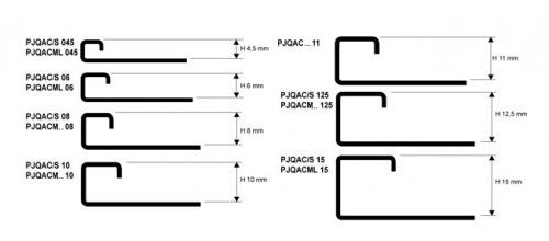 Prețul indicat se referă la varianta cu grosimea de 10mm, cod PJQSACS10, însă profilul este disponibil într-o gamă variată de înălțimi, de la 4.5mm până la 15mm, având o lungime standard de 2.7m.