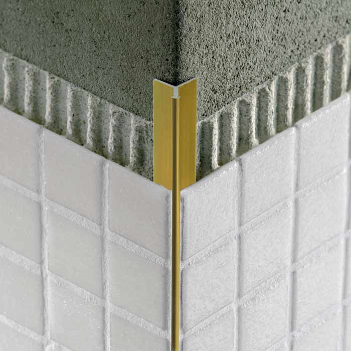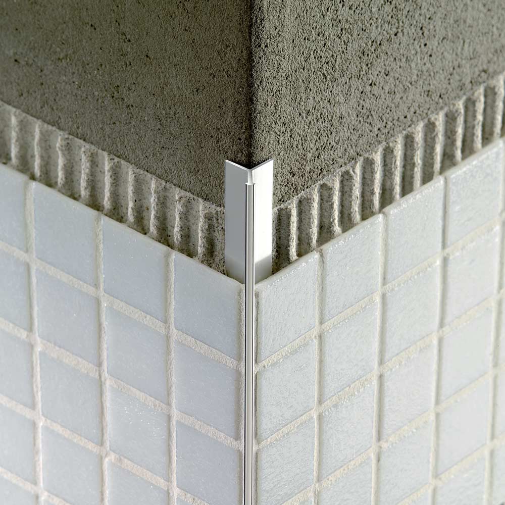 Produs de compania de renume Profilitec, acest profil metalic pentru protecția colțurilor este o soluție discretă și elegantă acolo unde este necesară tăierea plăcilor ceramice la un unghi de 45° și unde se dorește un design minimalist. În plus, profilul protejează și întărește colțurile plăcilor ceramice fragile împotriva loviturilor, oferind un design simplu cu rezultate maxime.