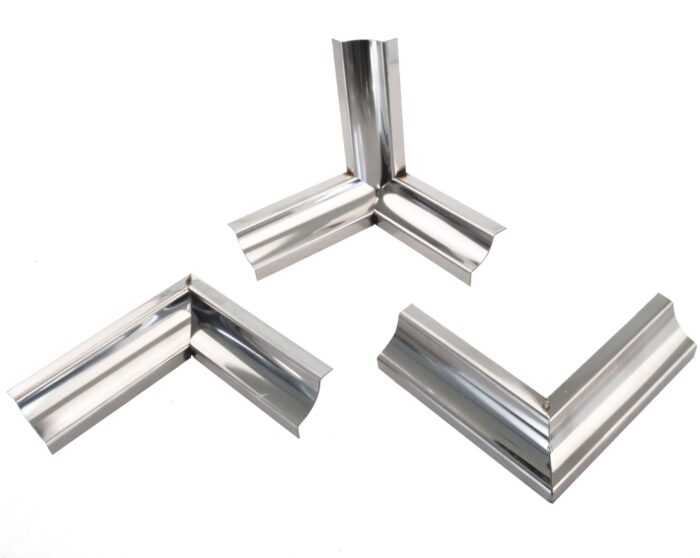 - Detalii tehnice: Lungime L=2.7m, Înălțime B=2.5cm, Adâncime A=2.5cm, Raza de curbura R=16mm, Nuanță: inox lucios.